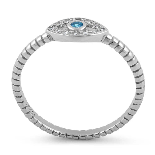 ANILLO EN PLATA LEY 925 OJO AZUL Y MICROCIRCONES
