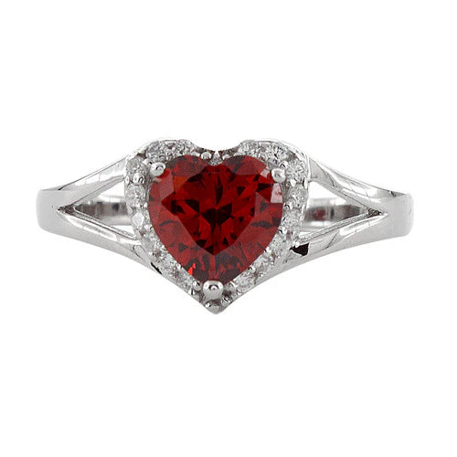 ANILLO EN PLATA CORAZON GRANATE CON MICROCIRCONES ALREDEDOR APCH68