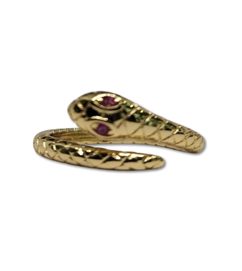 Anillo de Oro Laminado con Forma de Serpiente y Ojos Fucsia ANO-2