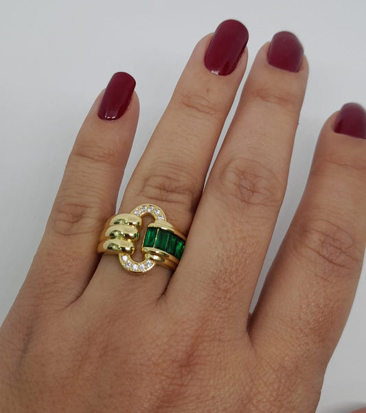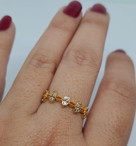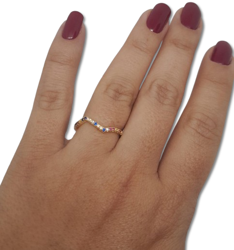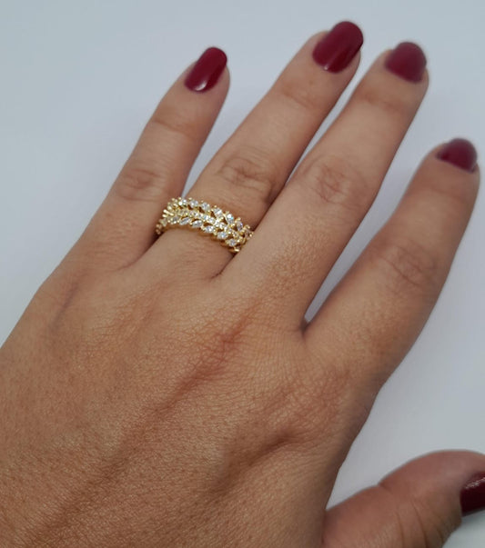 Anillo en Oro Laminado con Diseños Zig Zag y Microcircones AN-010