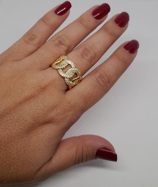 Anillo en Oro Laminado con Diseño de Cadena y Microcircones ANBJ208