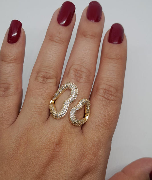 Anillo de Oro Laminado con 2 Corazones Enfrentados y Microcircones ANBJ9446