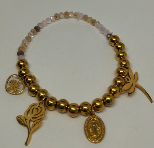 PULSERA ACERO Y MURANO SINTETICO MEDALLA MILAGROSA PABDVG
