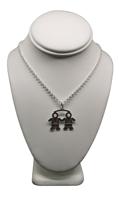 Te presento un hermoso dije en plata de ley con el diseño de dos niños, perfecto para quienes desean llevar consigo un símbolo de fraternidad, amor fraternal o amistad. Este dije captura la ternura y la conexión entre dos , ideal para padres o abuelos que quieran simbolizar a sus hijos o nietos, o para quienes quieran un recordatorio constante de un lazo especial.